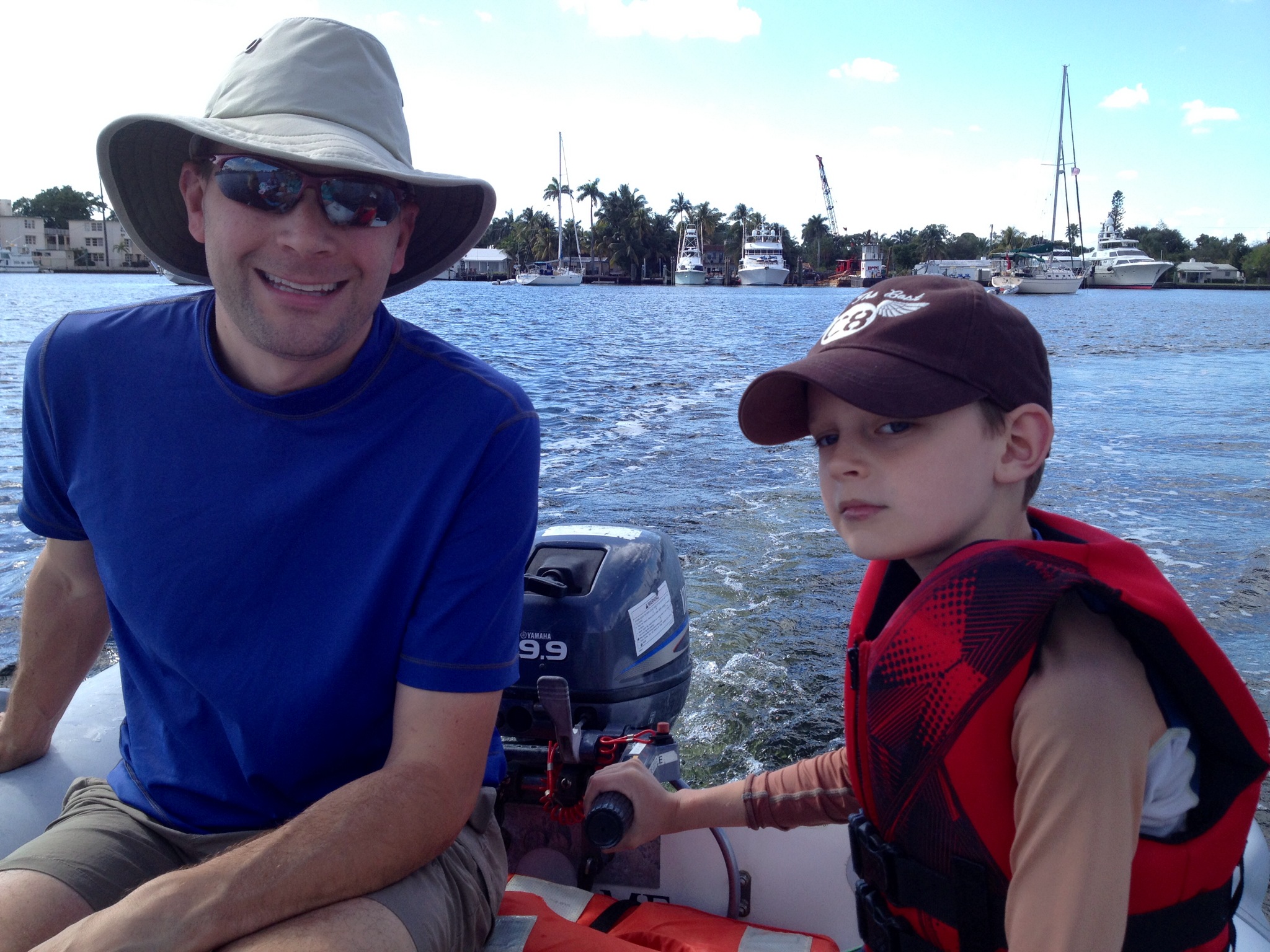 We always joke that Ken & Mel have twice as much energy as Marc and I do. So we knew they’d be game for any activities. We had a great time going on dinghy rides, eating Kilwin’s ice cream (sorry Ken for the pricey ice cream bill), having dinner on our dock with another cruising family (more on our new friends in the next blog), beach walking, watching gator wrestling, holding a young alligator and taking a tour of Fort Lauderdale via the sternwheel boat The Jungle Queen. While there is not much to blog about in this post, the bottom line is that we had the best visit with Marc’s mom and dad. And it was great for Marc’s parents to get a glimpse of what our life is now like living on the water. The kids were so bummed when Nana and Papa left and kept asking when they were coming back. Here are a bunch of photos from their visit. Ken and Mel plan to come visit again in February and we can’t wait for their return!