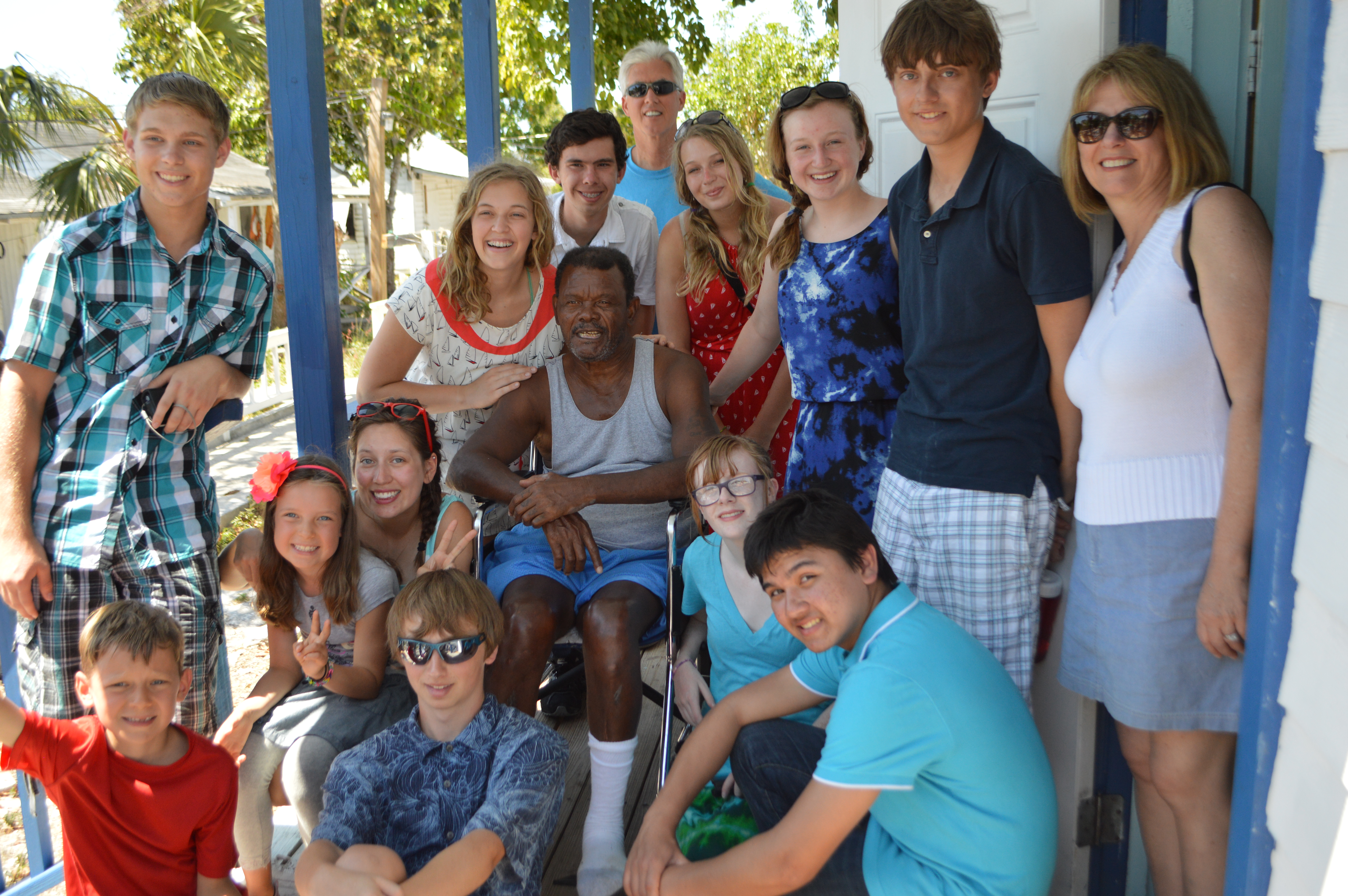 So the next morning we woke up, met up with the high school group and headed in the van caravan to the AIDS camp.  When we got there we started singing songs and then visited various residents.  At first Joellen and Camden were shy but within 20 minutes they were clapping and singing right along with the group.DSC_0046DSC_0023DSC_0086DSC_0141Some residents were in wheelchairs and others were bedridden.  But it didn’t phase our kids and they were right there in the thick of things and loved listening to the residents’ stories.  The gentleman in the second picture below (calls himself King Arthur) had an amazing voice and sang many songs to us including the Bahamian National Anthem.  He asked us to sing our National Anthem which we did and he told us to always be proud to be an American.  We all felt very patriotic and moved during that moment.  DSC_0069DSC_0074DSC_0055Joellen and Camden really warmed up to the students and latched on to a few of them.  It was really cute.DSC_0157DSC_0155DSC_0164We’ve been wanting to do some kind of volunteer work here in The Bahamas and we feel so blessed that we ran into Captain Bruce and his crew on Beacon Won and this wonderful group of high school students.  It was a reminder from God that no matter where you go, even in the midst of paradise, there are people who need help and need to know there are people that care.