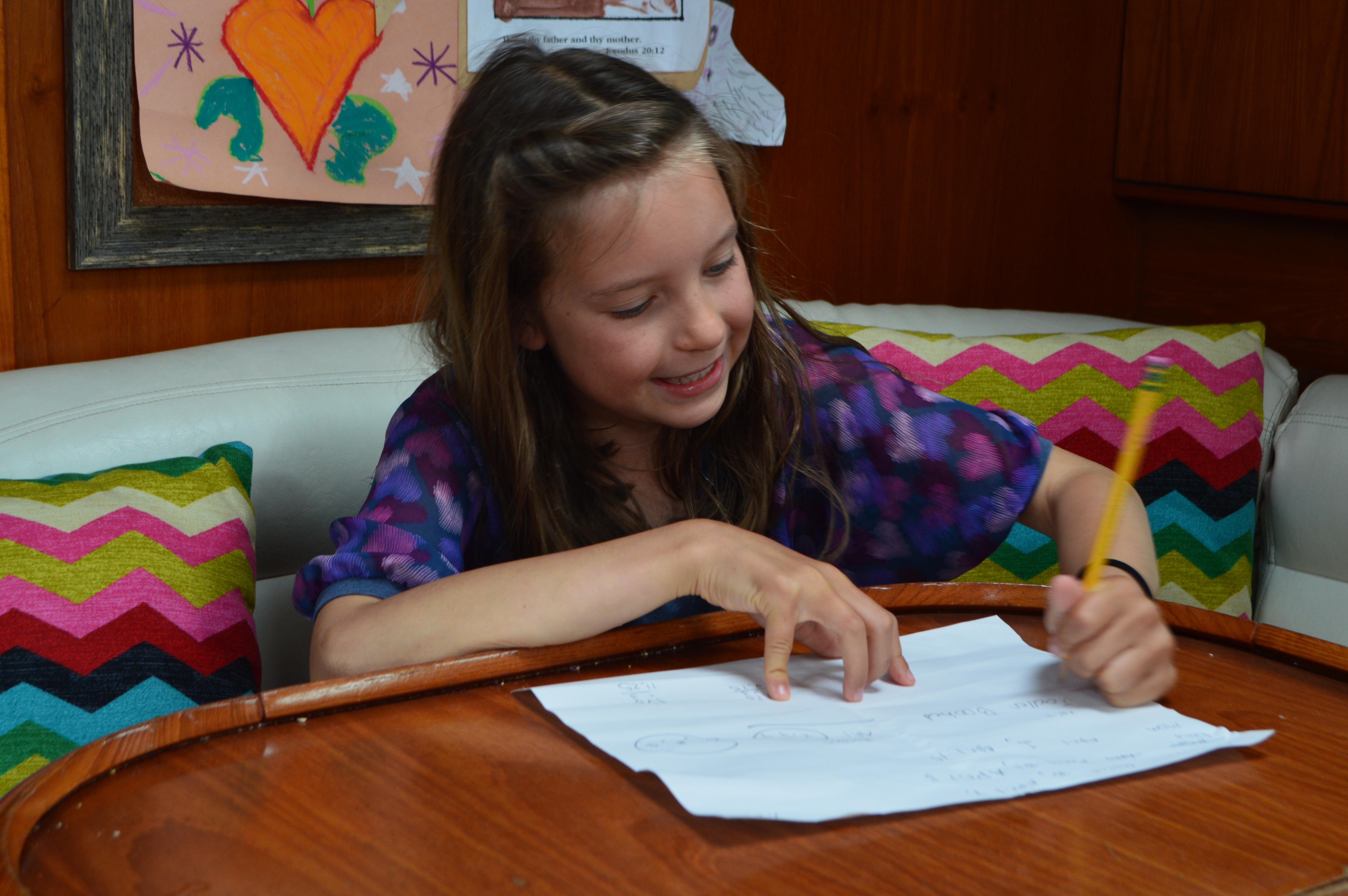 Another thing that is new is that I’ve been driving the dinghy more. I used to be scared of driving it but now I like it. Sometimes I get a little wild and Maria yells, “SLOW DOWN JOSIE!”